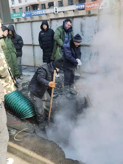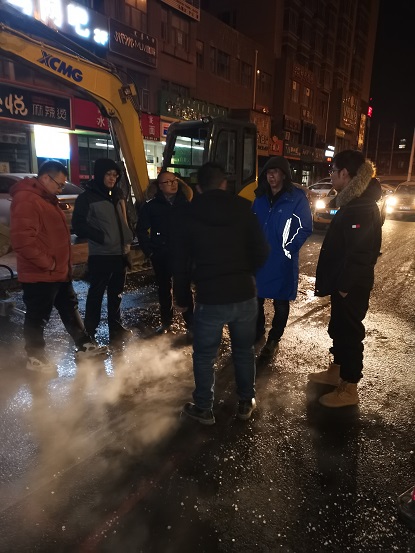 19日晚上10時(shí),歷經(jīng)15個(gè)小時(shí)搶修完畢。搶修結(jié)束后,搶修師傅們從挖開的坑里出來后,身穿的工作服上沾滿了泥漿,衣服也被熱氣蒸濕了,時(shí)值寒冬,室外溫度零下16℃,衣服很快被凍硬。一位剛從坑里出來打著哆嗦的搶修師傅告訴筆者,管道里水的溫度近90°,溝里熱氣騰騰,身上都冒汗呢,但一出地面,100多度的溫差,感覺直接就凍到骨頭里了,腿都凍直了,邁不了步。