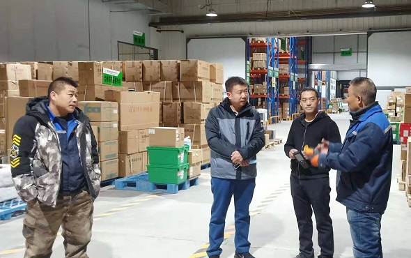 檢查組進(jìn)入國大倉儲(chǔ)庫房學(xué)習(xí)并進(jìn)一步了解了配送流程,認(rèn)真聽取了國大庫房管理人員對(duì)配送業(yè)務(wù)的意見和建議。雙方表示要加強(qiáng)交流和溝通,做好配送業(yè)務(wù)。