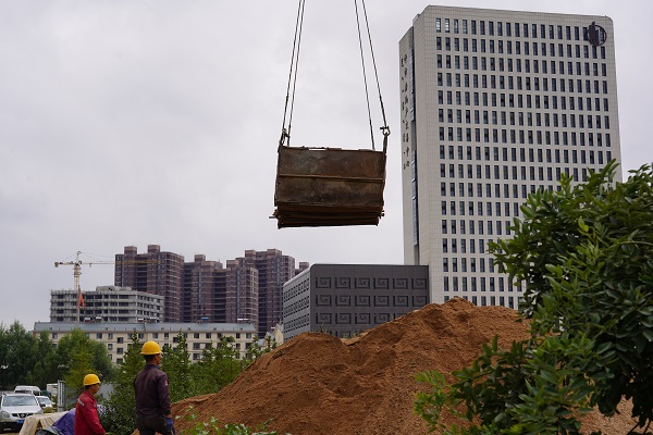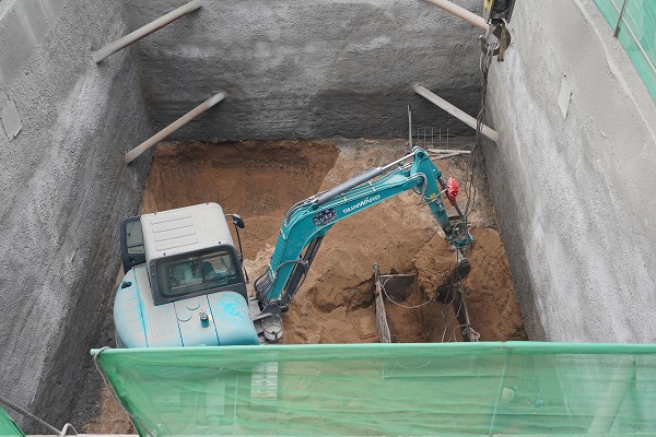 9月24日上午,筆者遠(yuǎn)遠(yuǎn)看到一吊車正將坑內(nèi)挖掘的土方吊起,走近作業(yè)坑,看到坑內(nèi)小型挖掘機正在開挖土方,還有2名施工人員正在進(jìn)行鋼筋網(wǎng)片的焊接。