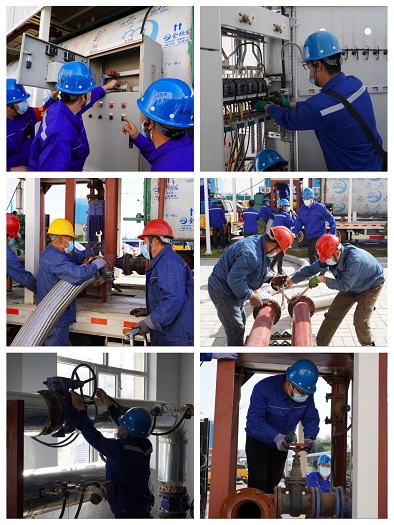 演練伊始,參加演習(xí)的運營所、司爐車間、檢修車間、電氣車間、儀表車間、設(shè)備處、安保處等人員按照預(yù)設(shè)的情境,各司其職,開始了管路連接、電源接入、鍋爐調(diào)試,再進(jìn)行循環(huán)泵、補(bǔ)水泵盤車的調(diào)試,以及補(bǔ)水、循環(huán)泵啟動、鍋爐點火等等一系列有條不紊的實戰(zhàn)操作。