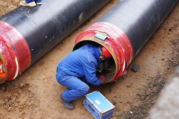 在施工現(xiàn)場(chǎng),筆者看到,5米深的管溝內(nèi),一段一段已焊接好的DN700管線向遠(yuǎn)方延伸著。在管溝內(nèi),工人們穿著厚厚的棉服,有的在為管道探傷、有的在為管道焊接口做保溫。
