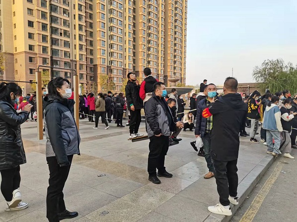 一行人還與小區(qū)居民進(jìn)行了交流,小區(qū)居民表示,在物業(yè)工作人員的安排下核算檢測迅速有序,大家都愿意積極配合小區(qū)防疫工作。