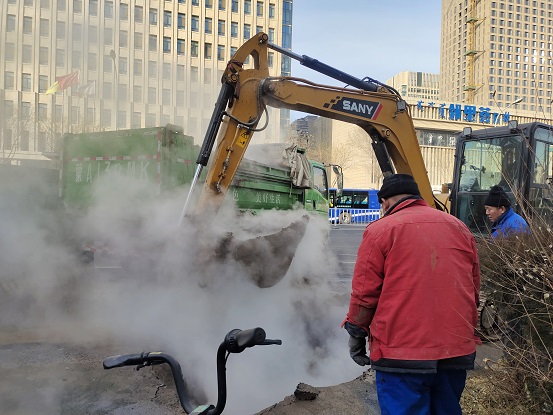 在鄂爾多斯東街龍谷華庭和銀聯(lián)大廈樓前臨街道路欄桿旁,緊靠人行道的一臺(tái)挖掘機(jī)正發(fā)出轟鳴聲,地溝內(nèi)不斷冒出騰騰熱氣這是1月2日下午15:00,在該地段搶修一次管網(wǎng)的畫(huà)面。當(dāng)日,熱心市民發(fā)現(xiàn)該處路段人行道有熱水冒出。城發(fā)橋靠分公司第六運(yùn)營(yíng)所工作人員接到熱線(xiàn)通知后,立即趕往現(xiàn)場(chǎng)。經(jīng)測(cè)水溫為74℃,確定為一次網(wǎng)漏水。所長(zhǎng)耿焱立即逐級(jí)上報(bào),并安排所部人員對(duì)漏點(diǎn)進(jìn)行現(xiàn)場(chǎng)安全防護(hù),同時(shí)對(duì)漏點(diǎn)情況進(jìn)行觀察。