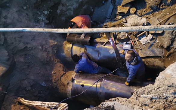 此次搶修采用DN800管道做"袖套"進(jìn)行管道焊接修復(fù),為整個(gè)搶修爭(zhēng)取了近1天的時(shí)間,最大程度保障了轄區(qū)熱用戶(hù)的供暖,為百姓的冬天筑起了一道最有力、最堅(jiān)固的溫暖防線(xiàn)。