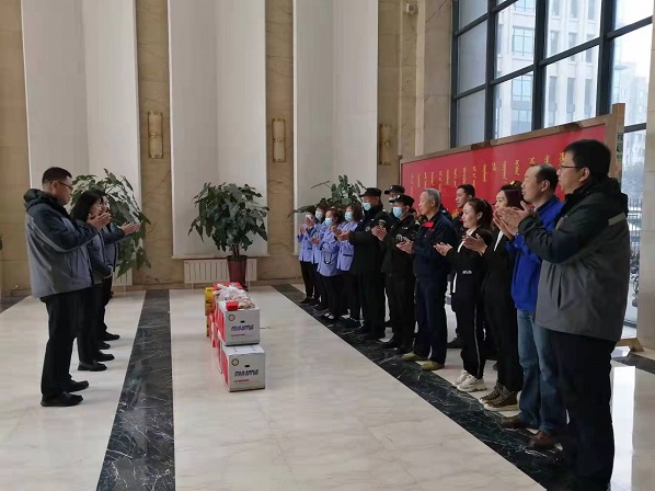 1月25日恰逢北方小年,城發(fā)物業(yè)公司黨支部書記娜仁、經(jīng)理史濤、黨支部副書記馬軍民等一行慰問組成員赴各在管項(xiàng)目走訪慰問,向春節(jié)期間堅(jiān)守在物業(yè)工作崗位第一線的員工致以親切慰問,并為堅(jiān)守崗位的員工送去了水果、餃子、熟食等慰問品。