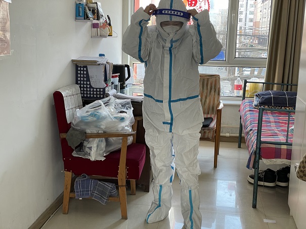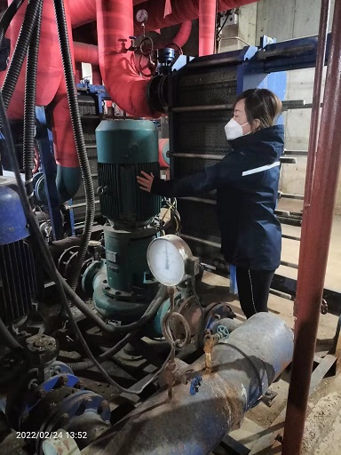 新華東分公司巨華朗域熱力站是受小區(qū)封控管理影響的第一個熱力站,公司臨時組建的運營小組的李文霞從17日小區(qū)封控以來,一直在熱力站值守。2月24日,筆者來到長樂宮供暖所,看到所長李瑋潔正在和李文霞視頻通話:"每天的消殺要做好,你自己和你愛人的防護工作也要做好,站里運行一切正常吧?你還需要什么物資嗎?"李瑋潔關切的詢問、耐心的叮囑著。李文霞說:"站內(nèi)運行一切正常,我每天都按照要求對站內(nèi)進行消殺,我和我愛人也很注意防護工作,分公司委托疫情防控人員給我們送進來的物資還有很多,請領導放心,我會一直堅守在工作崗位上。" 筆者又看到一旁有位工作人員在穿防護服,李瑋潔告訴筆者:"武警小區(qū)熱力站也在封控區(qū)域,我們和疫情防控相關人員溝通后,每天由站員穿著防護服,戴著口罩、醫(yī)用手套、防護面罩進行4次巡檢,現(xiàn)在正在穿隔離服準備去巡檢的是索媛媛。"二十多分鐘后,索媛媛回來,筆者看到她的隔離面罩上全都是霧氣,只見她熟練地將隔離服脫掉扔到指定的垃圾箱內(nèi),隨即開始做常規(guī)的消殺。她告訴筆者:"以前看到防疫一線的醫(yī)務人員穿著防護服工作只是覺得他們很辛苦,但是自從我也需要穿防護服巡站時,才有了親身的體驗,不僅防護服穿脫時不方便,而且著裝后行動也變得不靈敏,我每次只穿半個小時左右就覺得很不舒服了,而醫(yī)護人員一穿就一整天,還不能上廁所,因此,我這點辛苦算不了什么。"