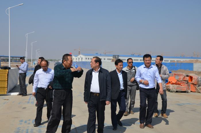 城發(fā)公司黨委書記、董事長、總經理張瑞平現(xiàn)場介紹惱包物流園區(qū)的建設情況。