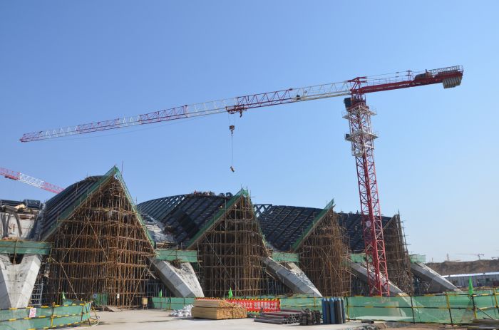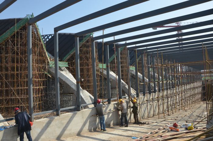 正在施工中的長途客運東站進車坡道。