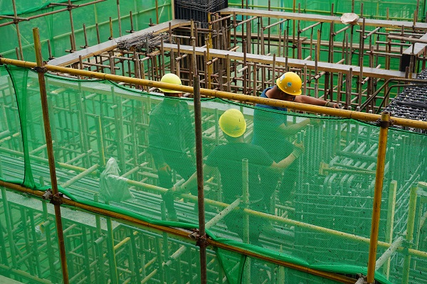 負責該工程的工作人員賈玉龍介紹,工程今年3月20復工,現(xiàn)輸煤棧橋、渣廊渣庫主體部分已封頂,現(xiàn)風機間框架結構部分正熱火朝天的施工,工人們加班加點的推進施工進度,預計5月15日主體封頂。
