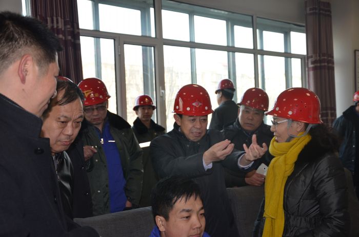 城發(fā)公司董事長張瑞平在橋靠司爐車間給環(huán)保局領導講解脫硫情況