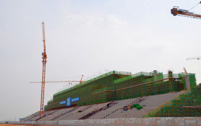 項目自2016年2月19日開工以來,參建單位克服了零下25℃極低氣溫、超厚凍土深度等一系列困難,用11天時間完成了近10萬方土方開挖工作,在100天的時間內(nèi)完成了7千噸鋼筋綁扎及3萬余方混凝土澆筑,提前完成看臺樓、亮馬圈、多功能主樓的主體封頂任務(wù),為順利完成項目奠定了堅實基礎(chǔ)。