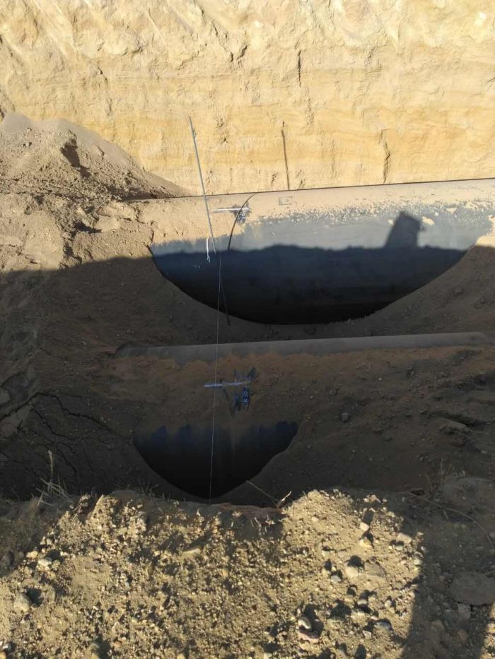 二標,溝槽開挖1300米,管道安裝1728米;全線施工情況航拍完成。