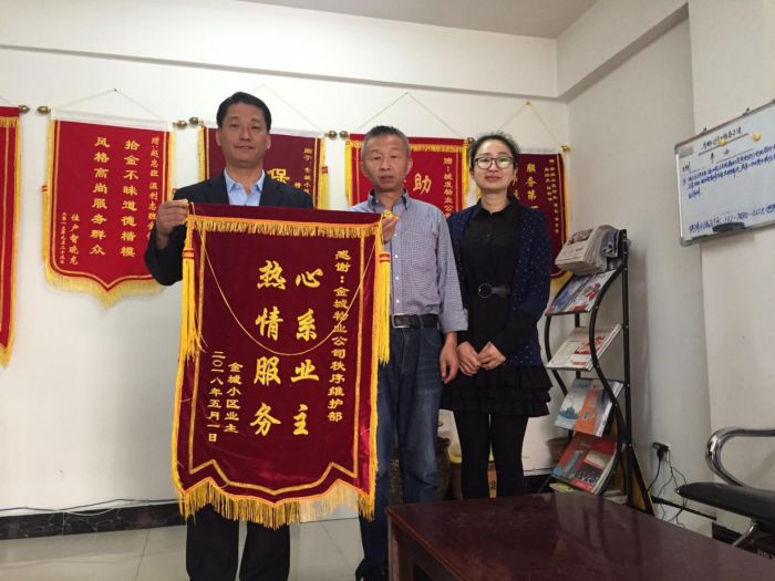 在大家的共同努力下,物業(yè)服務(wù)品質(zhì)提升百日行動(dòng)工作得到了業(yè)主的好評(píng)與支持,項(xiàng)目處先后收到業(yè)主送來(lái)的三面寫有急業(yè)主所急 幫業(yè)主所需、心系業(yè)主 熱情服務(wù)、服務(wù)第一全心為民 客戶至上暖至人心的錦旗。