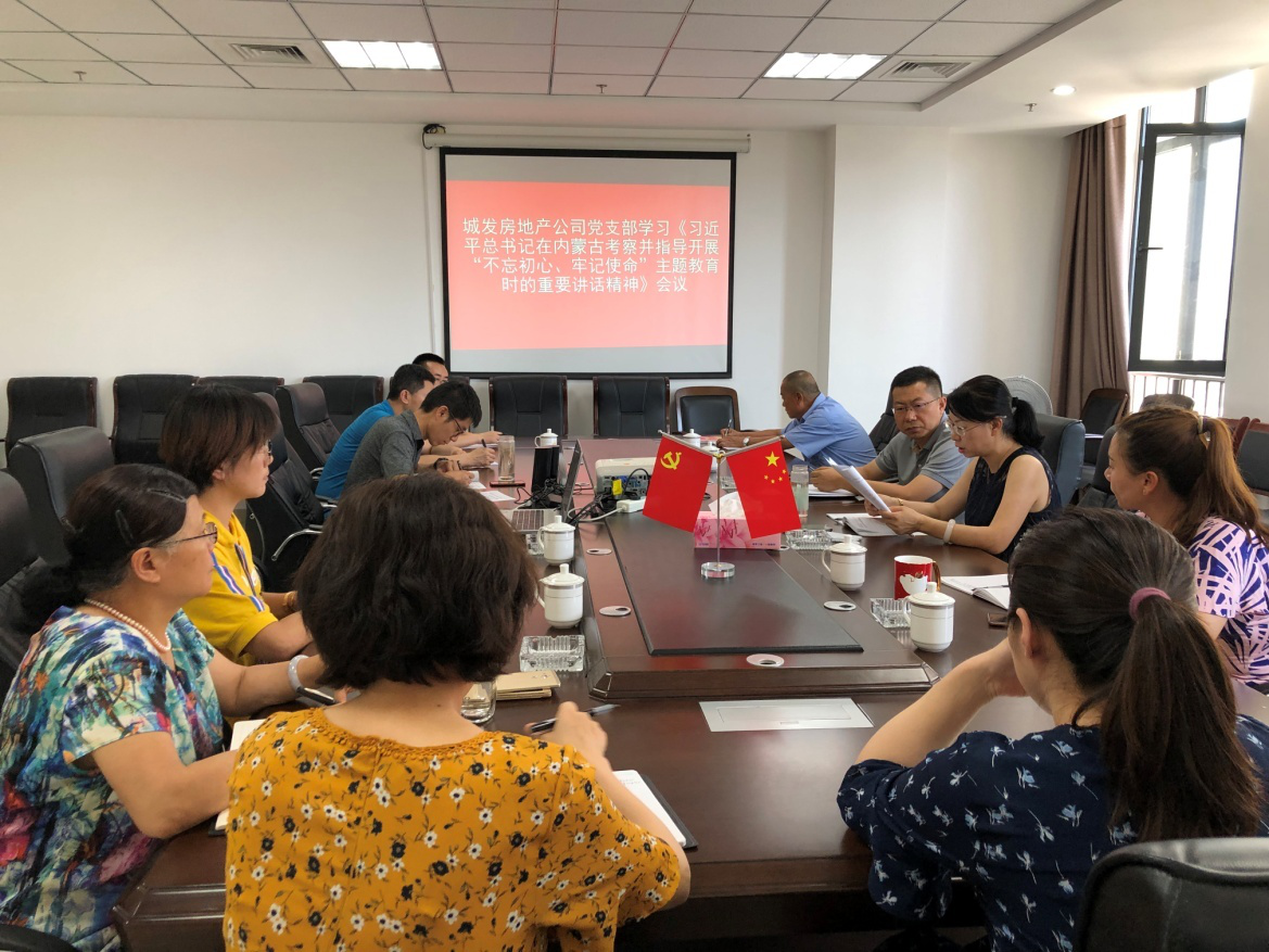 7月25日,房地產(chǎn)公司黨支部組織公司全體黨員干部和入黨積極分子,在城發(fā)集團(tuán)11樓會議室學(xué)習(xí)了習(xí)近平總書記在內(nèi)蒙古考察并指導(dǎo)開展“不忘初心、牢記使命”主題教育時的重要講話精神。