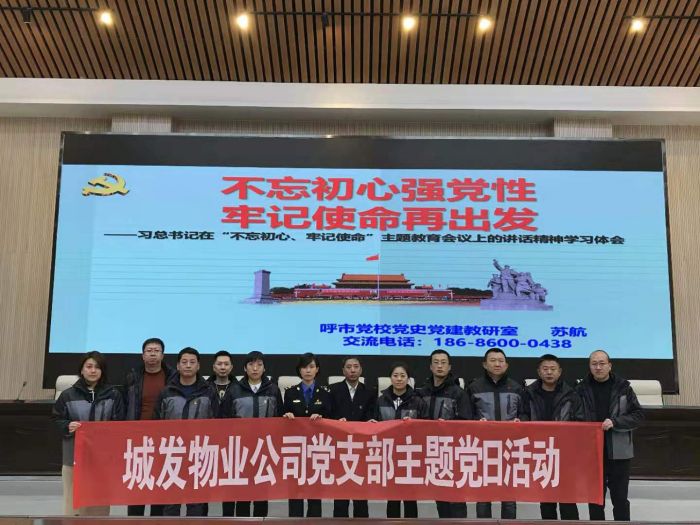 11月26日上午,城發(fā)物業(yè)公司全體黨員、入黨積極分子共計10人,由娜仁同志帶隊,到市廉政文化教育基地參加呼市住宅小區(qū)環(huán)境秩序管理局舉辦的“不忘初心、牢記使命”主題教育培訓(xùn)班。市小區(qū)局黨支部副書記、副局長云梅同志主持。